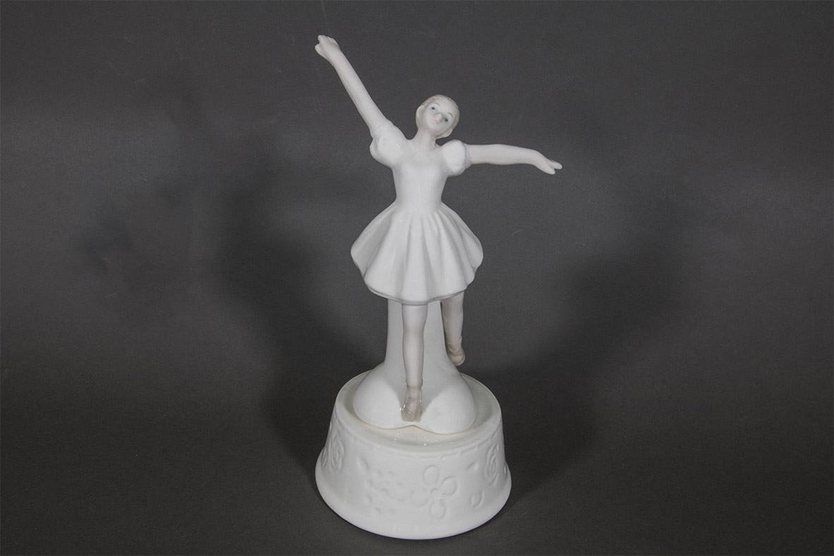 Carillon raffigurante una ballerina di danza classica in porcellana bianca.